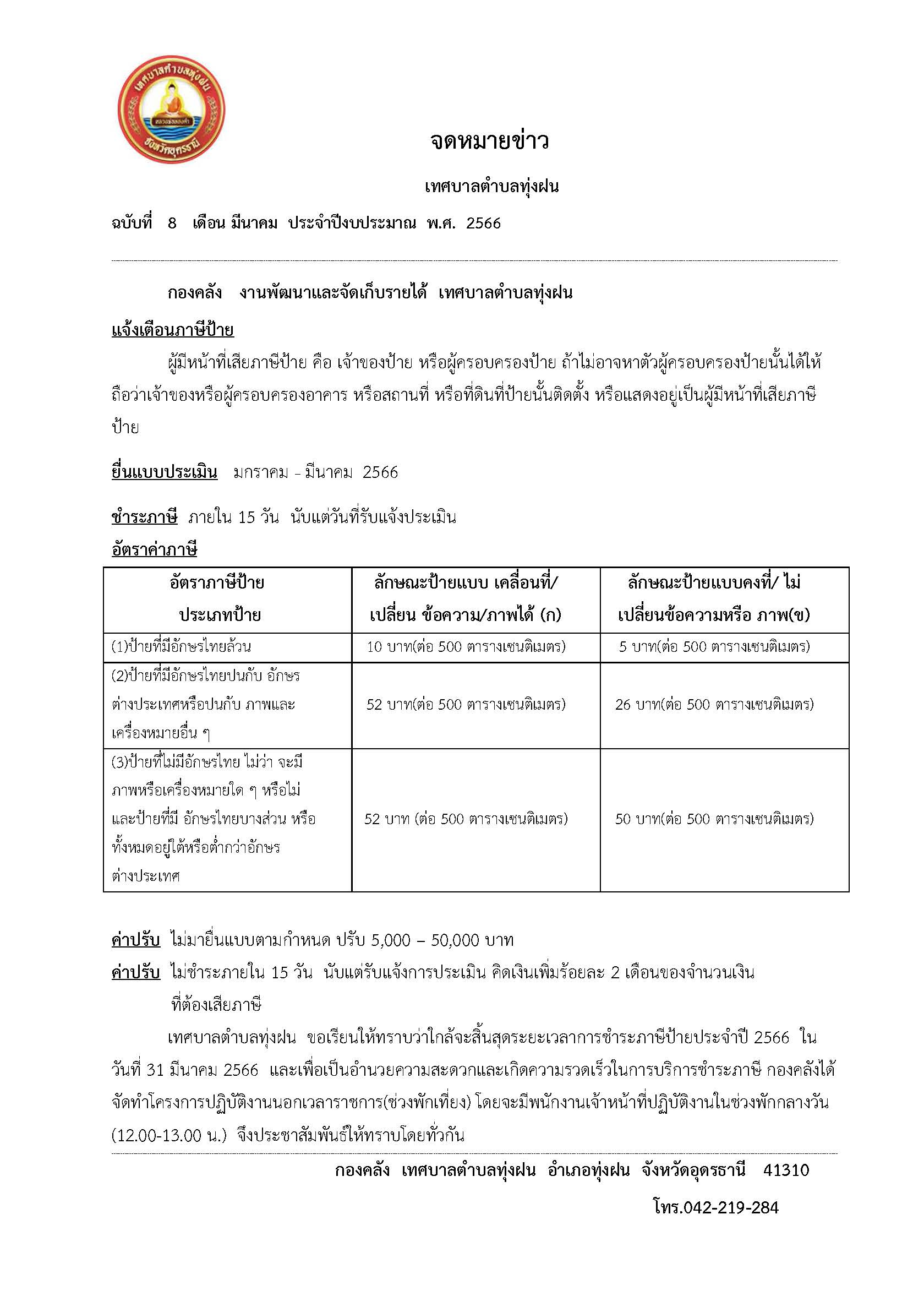 ประชาสัมพันธ์แจ้งเตือนการชำระภาษีป้าย